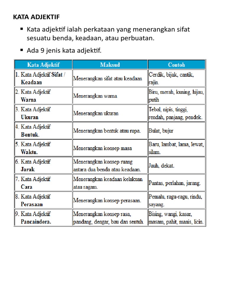 Nota Bahasa Malaysia Kata Sifat Adjektif I