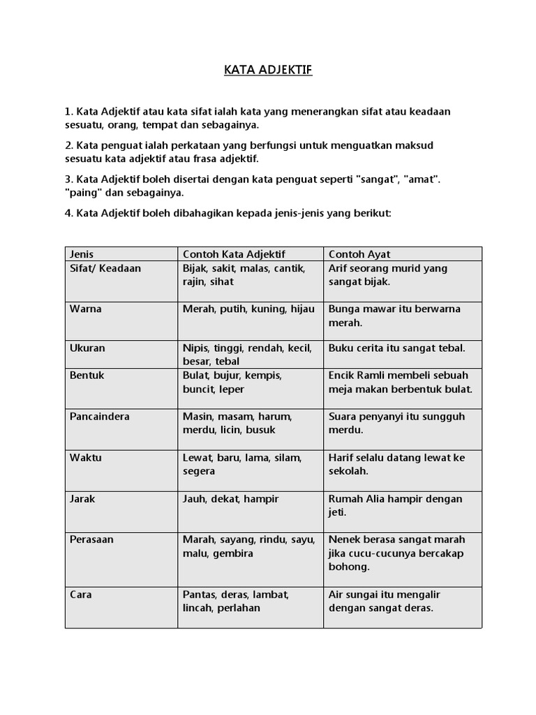 Penerangan 9 Jenis Dan Koleksi Contoh Kata Adjektif 1001 Contoh